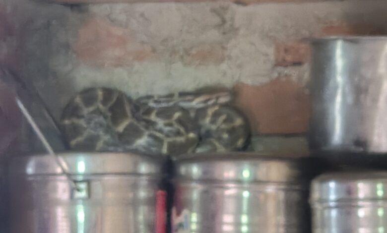 पाली कस्बा अंतर्गत पंडयाना वार्ड के एक किचन में मिला अजगर सांप, मचा हड़कंप